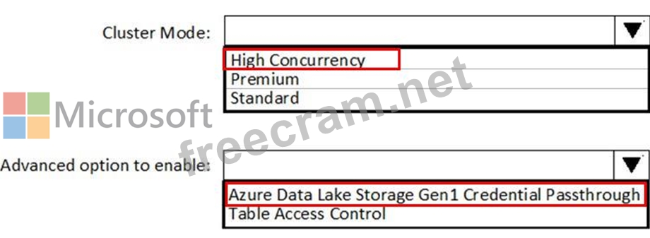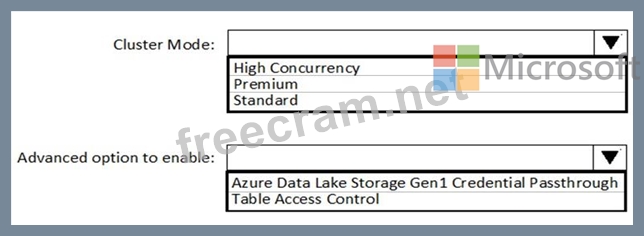 You need to implement an Azure Databricks cluster that automatically connects to Azure Data Lake Storage Gen2 by using Azure Active Directory (Azure AD) integration.