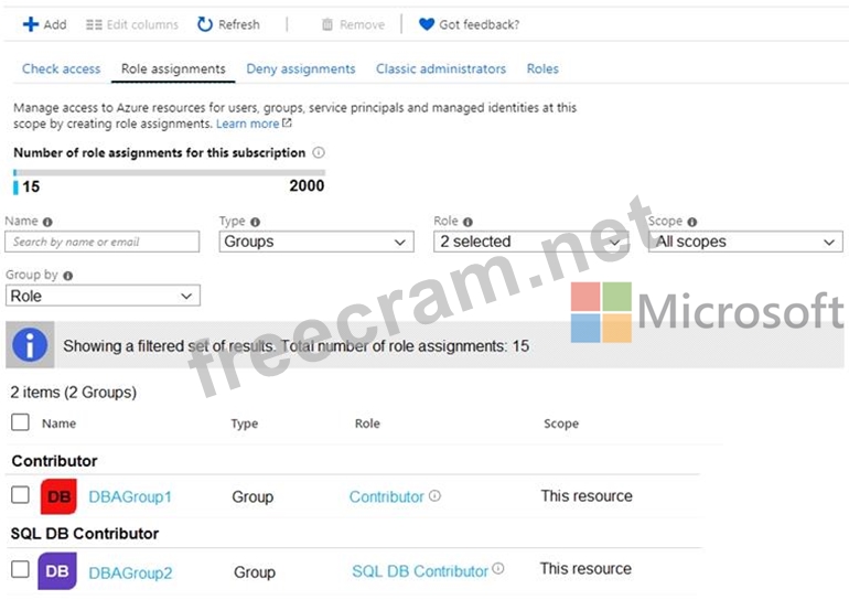 For each customer's Azure SQL Database server, you plan to assign the roles shown in the following exhibit.