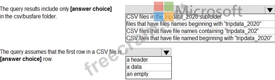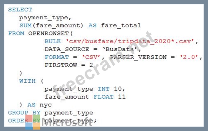 You are performing exploratory analysis of bus fare data in an Azure Data Lake Storage Gen2 account by using an Azure Synapse Analytics serverless SQL pool.