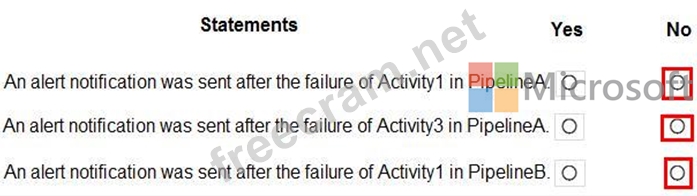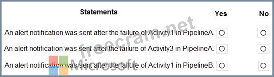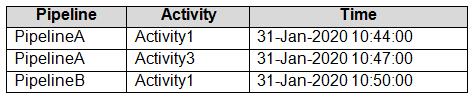 PipelineA has four activities as shown in the following exhibit.