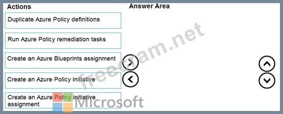You need to apply 20 built-in Azure Policy definitions to all new and existing Azure SQL Database deployments in an Azure subscription. The solution must minimize administrative effort. Which three actions should you perform in sequence? To answer, move the appropriate actions from the list of actions to the answer area and arrange them in the correct order.