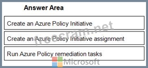 1 - Create an Azure Policy Initiative 2 - Create an Azure Policy Initiative assignment 3 - Run Azure Policy remediation tasks Reference: https://docs.microsoft.com/en-us/azure/governance/policy/tutorials/create-and-manage