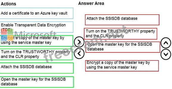 open master key decryption by password = 'LS1Setup!' --'Password used when creating SSISDB' Alter Master Key Add encryption by Service Master Key Step 4: Encrypt a copy of the mater key by using the service master key Reference:
