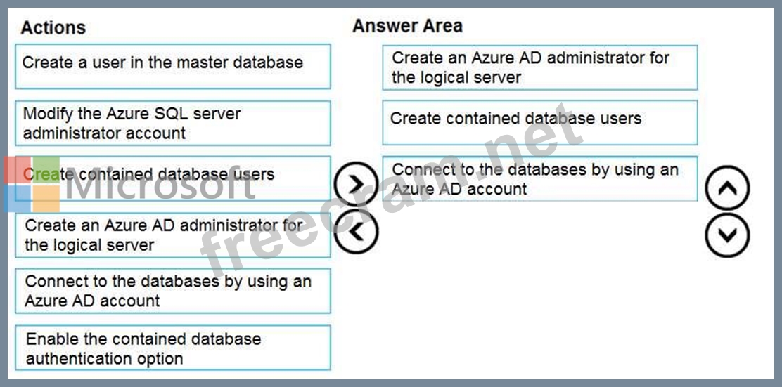 Question 3: DRAG DROP You have an Azure SQL Database instance named Data...