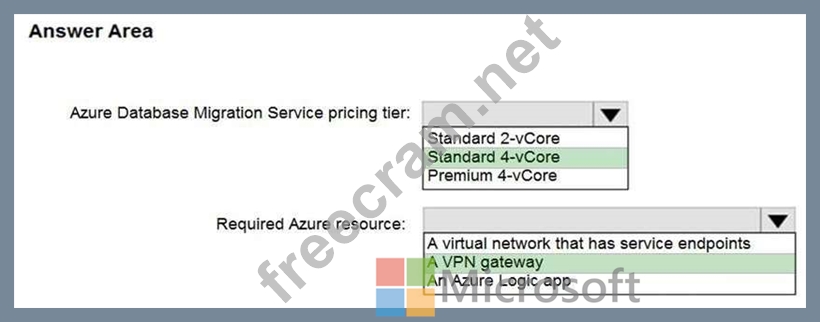 You need to create a Microsoft Azure Virtual Network for the Azure Database Migration Service by using the Azure Resource Manager deployment model, which provides site-to-site connectivity to your on-premises source servers by using either ExpressRoute or VPN.