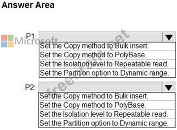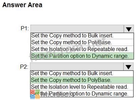 * P2:Uses a copy activity to copy data from text-delimited files in an Azure Data Lake Storage Gen2 account to a nonpartitioned table in a dedicated SQL pool of WS2 You need to configure P1 and P2 to maximize parallelism and performance.
