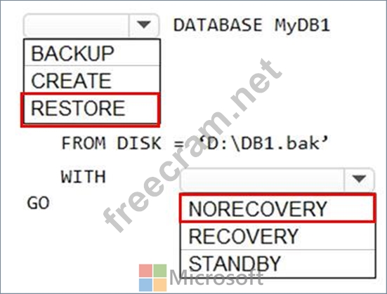 How should you complete the Transact-SQL statement? To answer, select the appropriate options in the answer area.