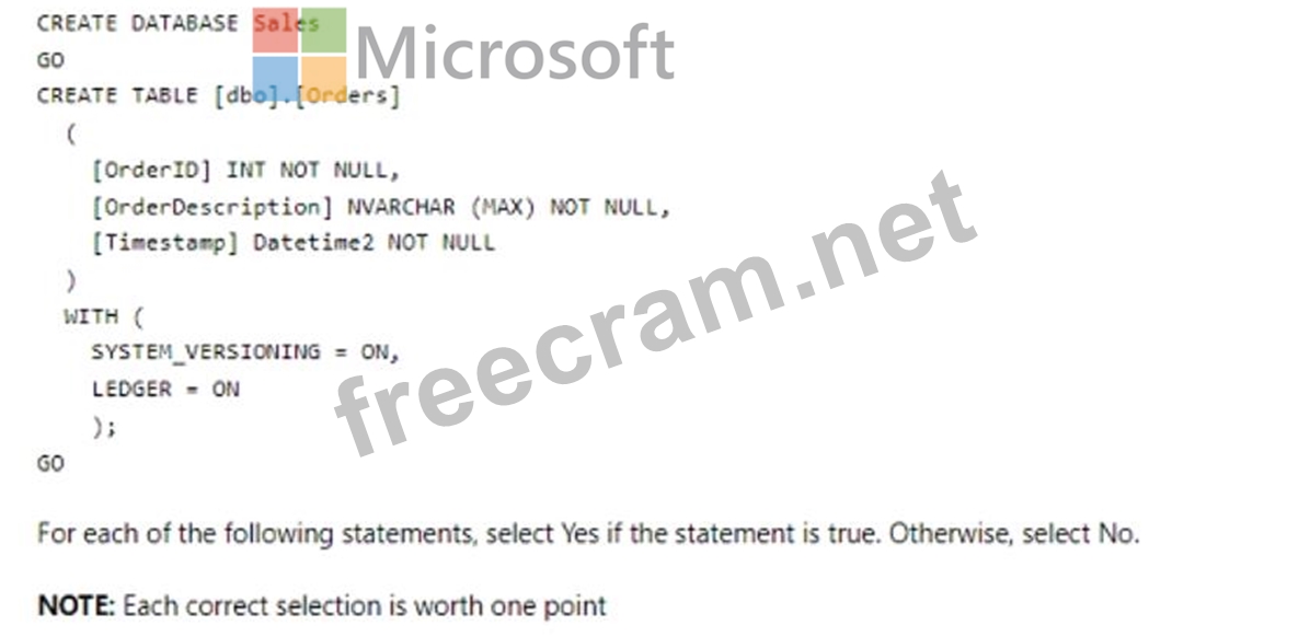 Question 68: You have an Azure SQL logical server. You run the following ...