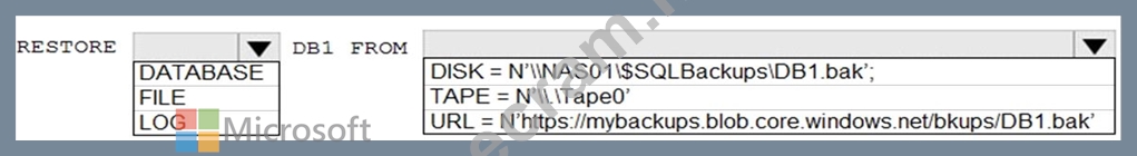 You need to restore a database named DB1 by using Transact-SQL.