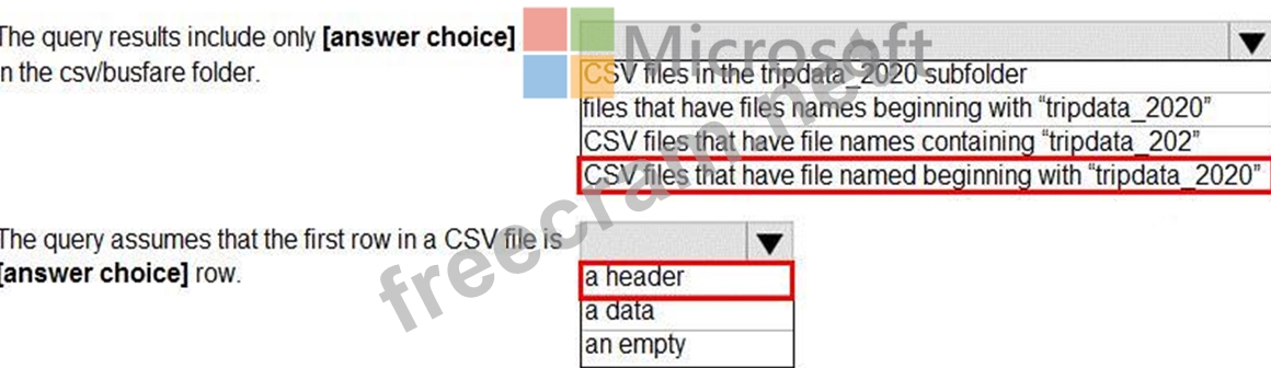 You are performing exploratory analysis of bus fare data in an Azure Data Lake Storage Gen2 account by using an Azure Synapse Analytics serverless SQL pool.