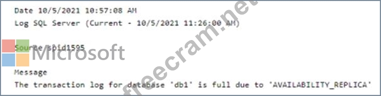Question 39: You have a database named db1. The log for db1 contains the ...