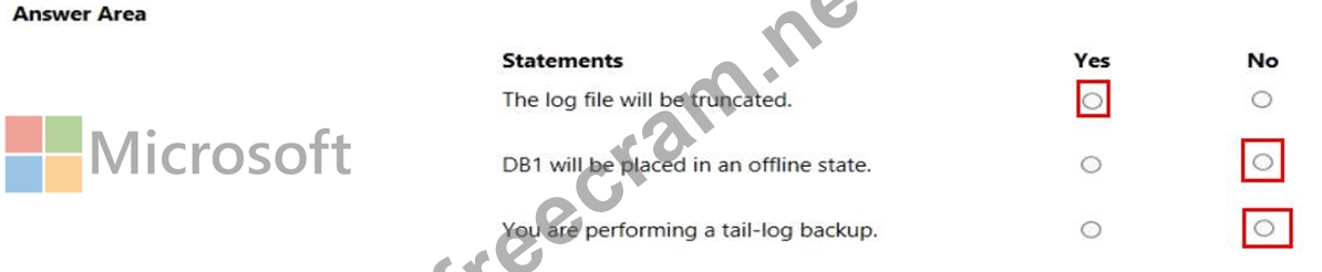 Question 39: You have a database named db1. The log for db1 contains the ...