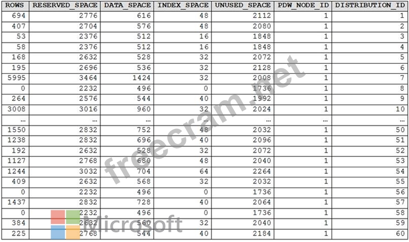 You have an Azure Synapse Analytics dedicated SQL pool. You run PDW_SHOWSPACEUSED('dbo.FactInternetSales'); and get the results shown in the following table. Which statement accurately describes the dbo.FactInternetSales table?