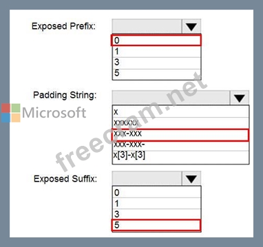 How should you configure the dynamic data mask? To answer, select the appropriate options in the answer area.
