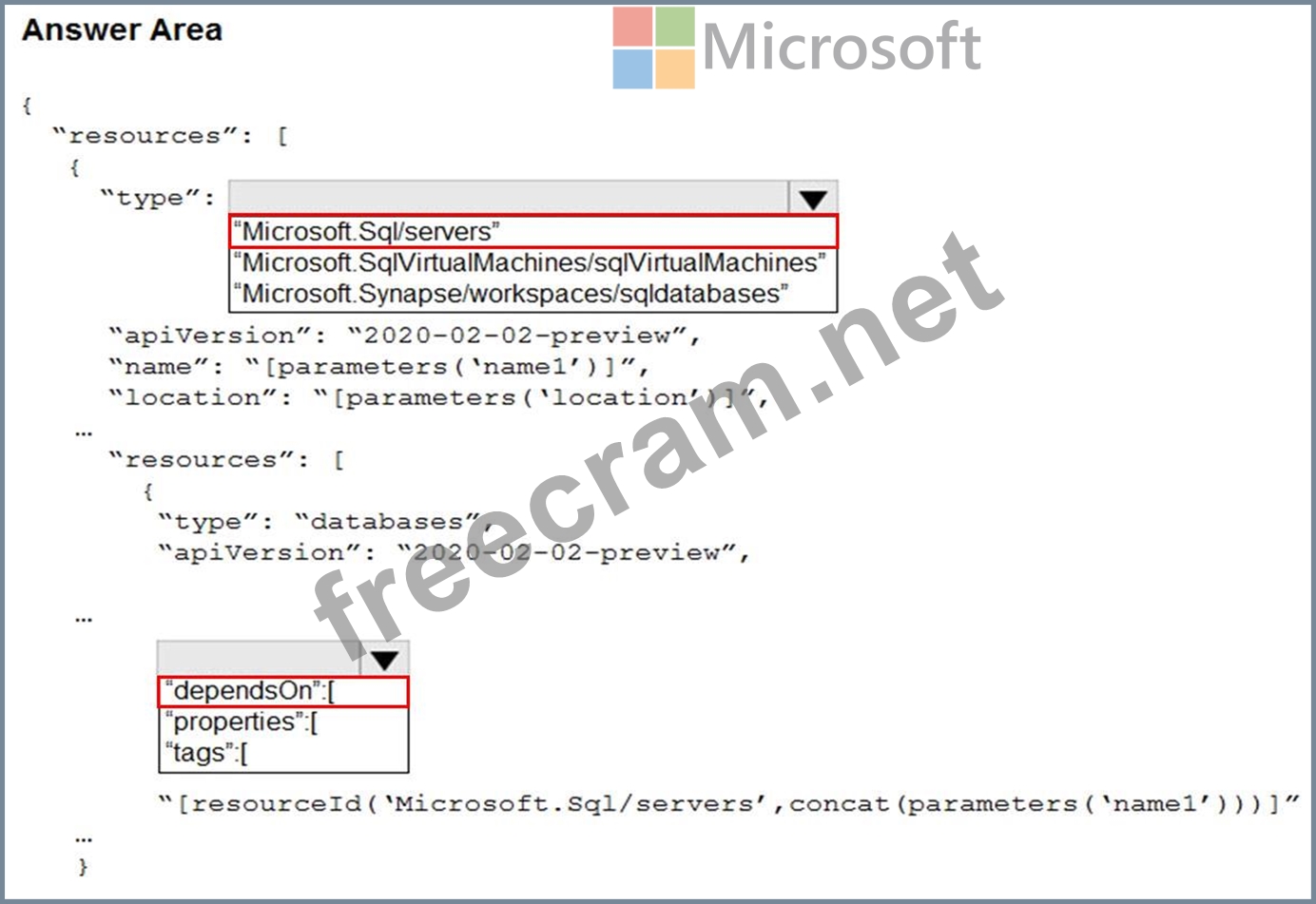 How should you complete the template? To answer, select the appropriate options in the answer area.