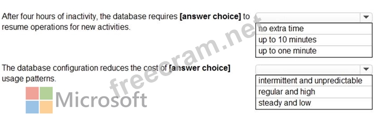 Question 10: You are planning a solution that will use Azure SQL Database...