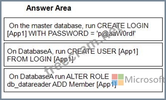 1 - On the master database, run CREATE LOGIN [App1] WITH PASSWORD = 'p@aaW0rd!'