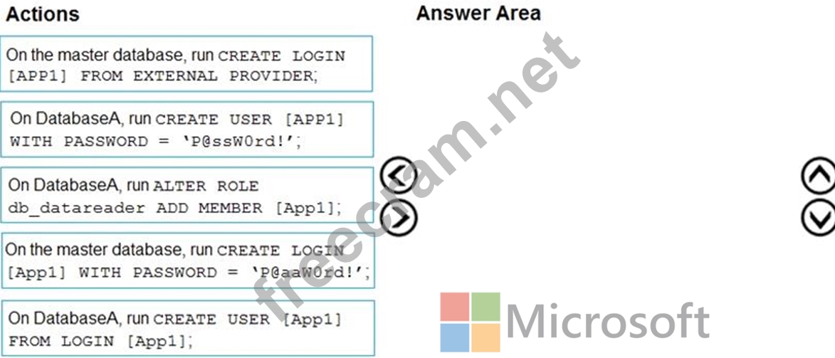 You plan to add a new user named App1 to DatabaseA and grant App1 db_datacenter permissions. App1 will use SQL Server Authentication.