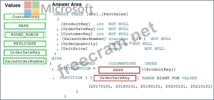 Question 17: You plan to create a table in an Azure Synapse Analytics ded...