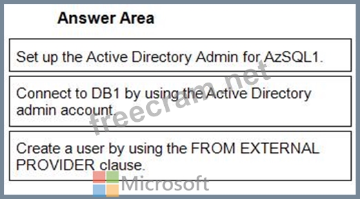 You need to create a contained database user in DB1 who will use Azure Active Directory (Azure AD) for authentication.