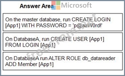 You need to create App1. The solution must ensure that App1 can be given access to other databases by using the same credentials.