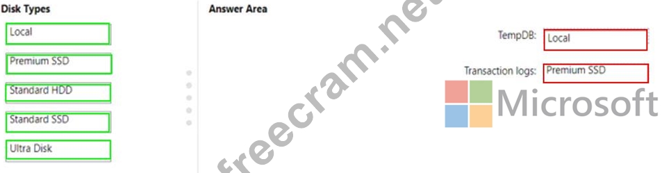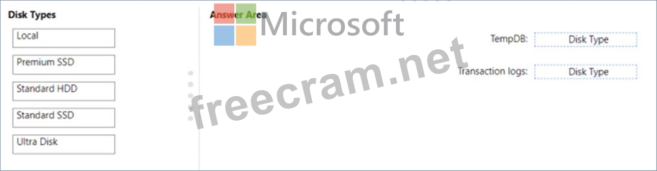 Which type of disk should you use for each workload? To answer. drag the appropriate disk types to the correct workloads. Each disk type may be used once, at all. You may need to drag the split bar between panes or scroll to view content.