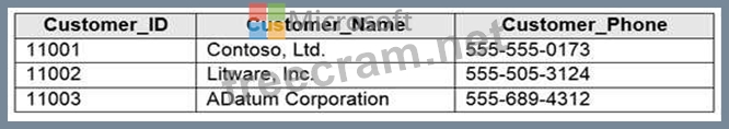 You have an Azure SQL database that contains a table named Customer. Customer has the columns shown in the following table.