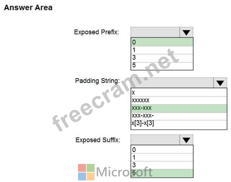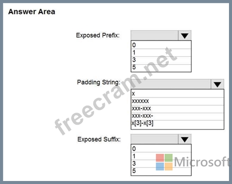 How should you configure the dynamic data mask? To answer, select the appropriate options in the answer area.