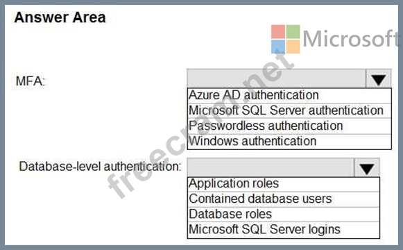 You need to recommend an authentication solution for Pool1. The solution must support multi-factor authentication (MFA) and database-level authentication.