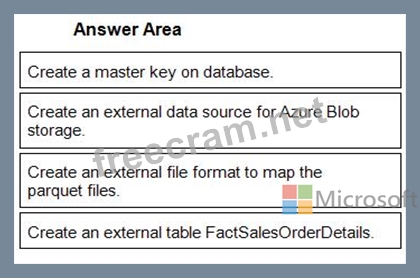 You must use PolyBase to retrieve data from Azure Blob storage that resides in parquet format and load the data into a large table called FactSalesOrderDetails.