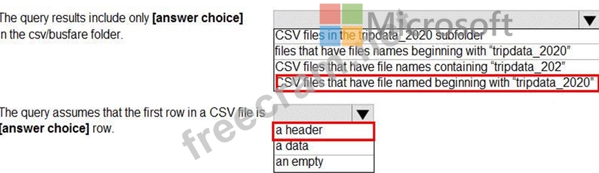 You are performing exploratory analysis of bus fare data in an Azure Data Lake Storage Gen2 account by using an Azure Synapse Analytics serverless SQL pool.
