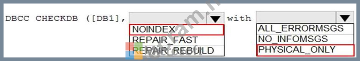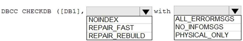 Which Transact-SQL command should you run? To answer, select the appropriate options in the answer area.