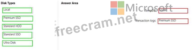 Which type of disk should you use for each workload? To answer. drag the appropriate disk types to the correct workloads. Each disk type may be used once, at all. You may need to drag the split bar between panes or scroll to view content.