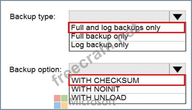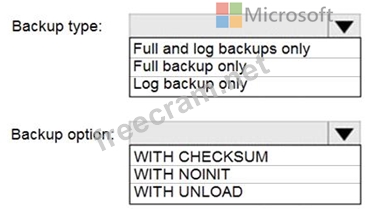 How should you configure the backup of DB1? To answer, select the appropriate options in the answer area.