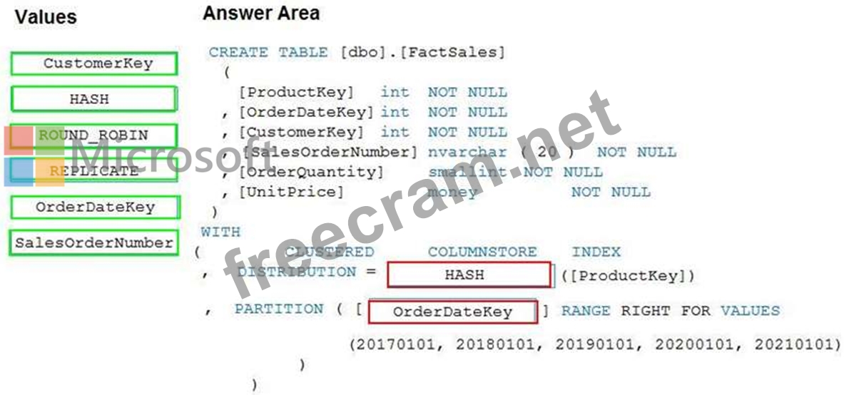 Question 7: You plan to create a table in an Azure Synapse Analytics ded...