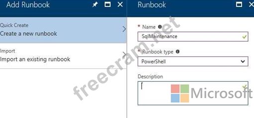 2. Choose "create a new runbook" and then give it a name and choose "Powershell" as the type of the runbook and then click on "create"