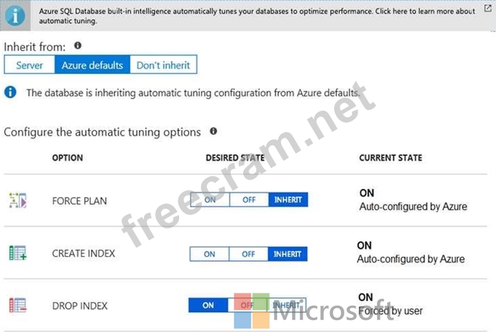 Question 200: You have an Azure SQL database named DB1. The automatic tuni...