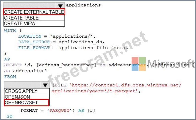 How should you complete the Transact-SQL statement? To answer, select the appropriate options in the answer area.