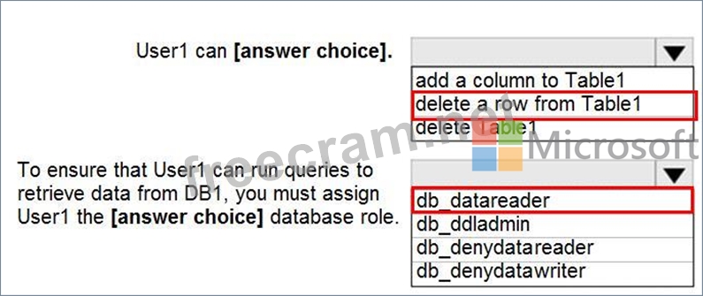 Question 227: HOTSPOT You have a Microsoft SQL Server database named DB1 t...