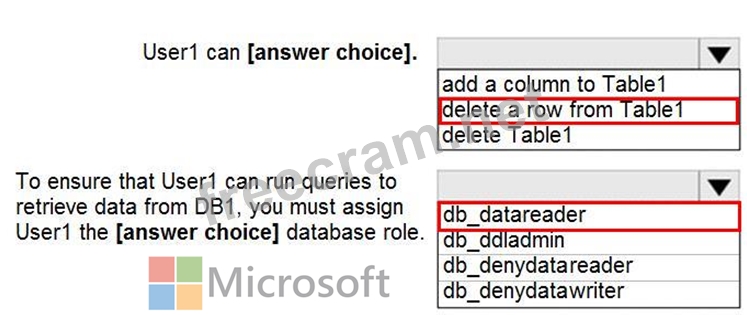 Question 227: HOTSPOT You have a Microsoft SQL Server database named DB1 t...