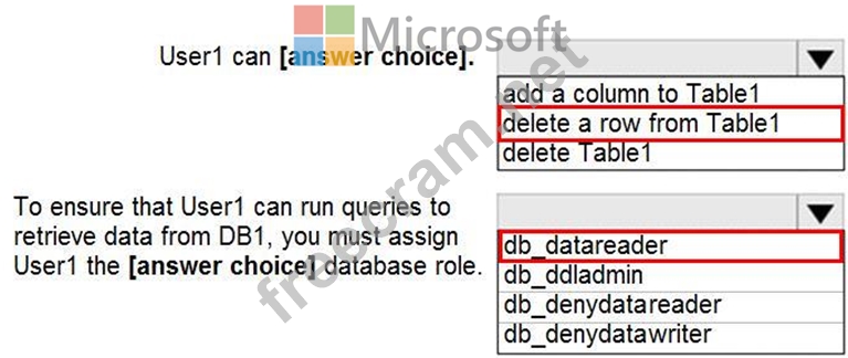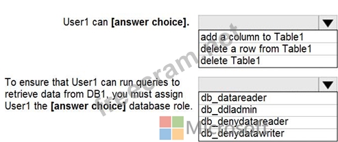 Question 227: HOTSPOT You have a Microsoft SQL Server database named DB1 t...