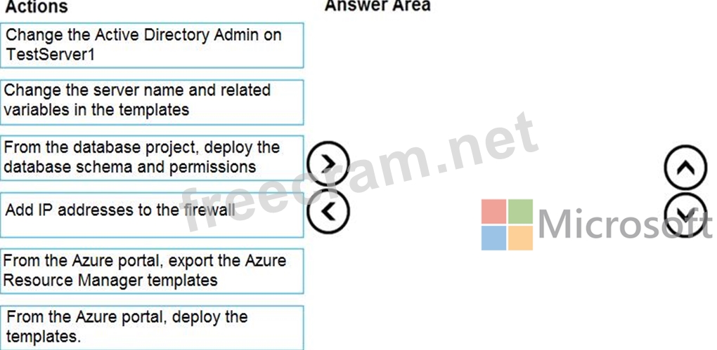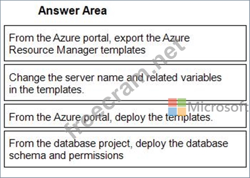 You need to populate a new resource group named App1Test with the DB1 database and an Azure SQL Server named TestServer1. The resources in App1Test must have the same configurations as the resources in App1Dev.