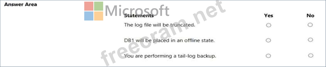 Question 227: HOTSPOT You have a Microsoft SQL Server database named DB1 t...