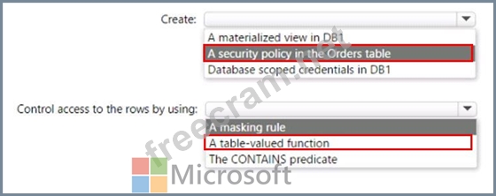 You have an Azure SQL database named DB1 that contains a table named Orders. The Orders table contains a row for each sales order. Each sales order includes the name of the user who placed the order.