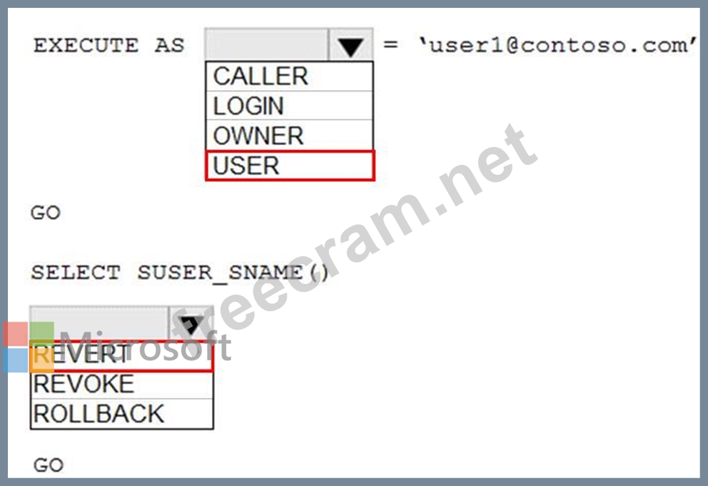 How should you complete the Transact-SQL statement? To answer, select the appropriate options in the answer area.