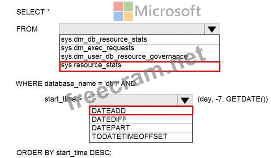 Question 185: You have an Azure SQL database named DB1. You need to displa...