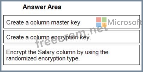 You need to encrypt the Salary column. The solution must prevent database administrators from reading the data in the Salary column and must provide the most secure encryption.