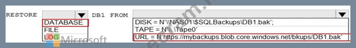 You need to restore a database named DB1 by using Transact-SQL.