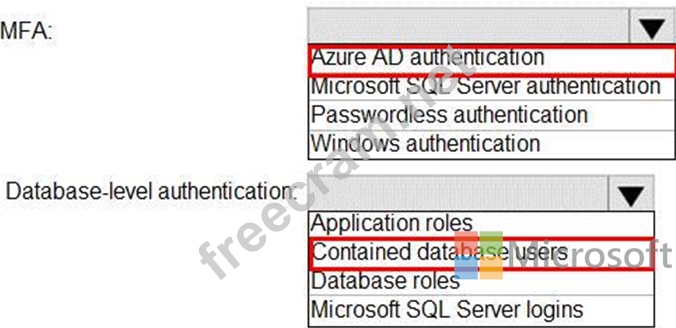 You need to recommend an authentication solution for Pool1. The solution must support multi-factor authentication (MFA) and database-level authentication.