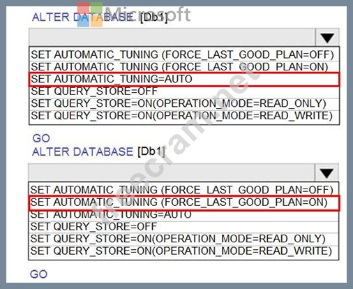 Question 200: You have an Azure SQL database named DB1. The automatic tuni...